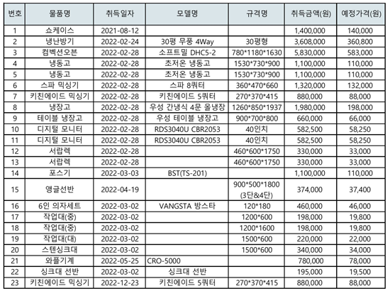 해운대지역자활센터 자활사업단 비품 매각 입찰 공고(3차)